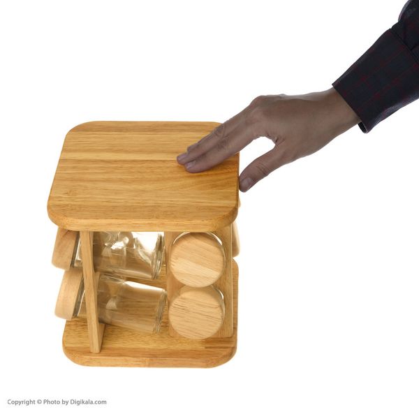 زندگی مدرن نیازمند گجت های کارامدی می باشد که در عین سادگی نیازهای خاص ما را برطرف می کنند. نظم و ترتیب دادن به ادویه و سبزیجات خشک از دیرباز جزو دغدغه های علاقه مندان به آشپزی بوده است. این نیاز باید توسط ابزاری برطرف شود که در عین حالی که ماده مورد نظر شما را به آسانی قابل شناسایی و در دسترستان قرار می دهد از نظر طراحی و شکل ظاهری قابل قبول و آراسته نیز داشته باشد. اگر به دنبال این ابزار هستید جا ادویه ای کد S084 تمامی خواسته های شما را تامین خواهد کرد. این جا ادویه ای با الهام از نمونه های مشابه از برند معتبر کوچن پروفی و با توجه به نیاز و خواسته های مصرف کننده داخلی در کشور ایران ساخته شده است. بدنه این جاادویه ای از چوب رابر وود ( Rubber Wood ) که یک چوب بسیار محکم , ریز دانه با نقوش زیبا وجود برخی حفره های طبیعی است و از لحاظ دانه بندی و وزن می توان آن را با چوب بلوط مقایسه کرد ساخته شده است که مقاومت بالایی داشته و در صورت نگهداری صحیح برای مدت های طولانی قابل استفاده می باشد. سطح مقطع این جا ادویه ای به شکل مربع و به ابعاد 17x17 و ارتفاع آن در حدود 18 سانتیمتر می باشد. از هر طرف 2 جا ادویه ای به قطر 4 و ارتفاع 10 سانتیمتر با درب چوبی در آن قرار گرفته و در مجموع 8 شیشه را نگاه می دارد. پایه آن دارای قابلیت گردان بوده و به آسانی در هر دو طرف قابلیت چرخش 360 درجه دارد.