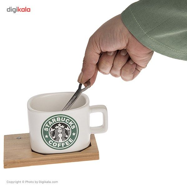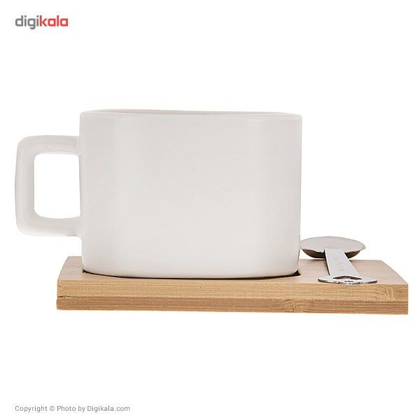 اگر به دنبال ایجاد تنوع در نحوه‌ی پذیرایی هستید فنجان طرح 3 که در تصویر می‌بینید می‌تواند باعث ایجاد تفاوت و خلاقیت شود. این فنجان که از جنس سرامیک است روی پایه‌ای چوبی قرار داده شده تا محتویاتش باعث لک شدن سطح میز نشود. ارتفاع این فنجان 5.5 سانتی‌متر و قطر دهانه‌ی آن 7.5 سانتی‌متر است. روی قسمت چوبی تکه‌ای آهن‌ربا قرار داده شده تا قاشق استیل به آن بچسبد و با این کار از افتادن قاشق به روی زمین و حتی گم شدن آن جلوگیری کرد. وزن فنجان به تنهایی و در حالت خالی 230 گرم و وزن سه تکه با هم 298 گرم است. سرامیک مرغوب استفاده شده در این فنجان طعم نوشیدنی را تغییر نخواهد داد و از نظر بهداشتی سالم است.
