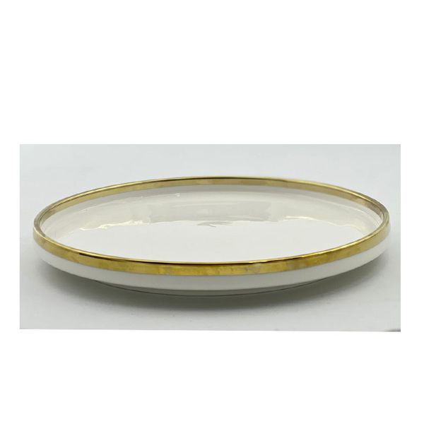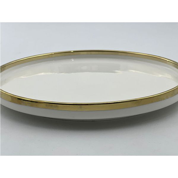 بشقاب غذاخوری مدل Golden line plate تک نفره دارای قطر 24.5سانتی متر می باشد و برای سرو غذا، شیرینی و حتی میوه می تواند مناسب باشد. رنگ زمینه سفید براق می باشدو حاشیه دور تا دور بشقاب با خط طلایی مزین شده است و بی نظیر و چشمگیر می باشد. بشقاب غذاخوری مدل Golden line plate تک نفره دارای ضخامت و کیفیت خوبی است. و حتی میتواند جنبه تزئینی داشته باشد.
